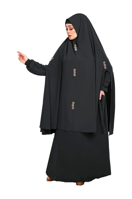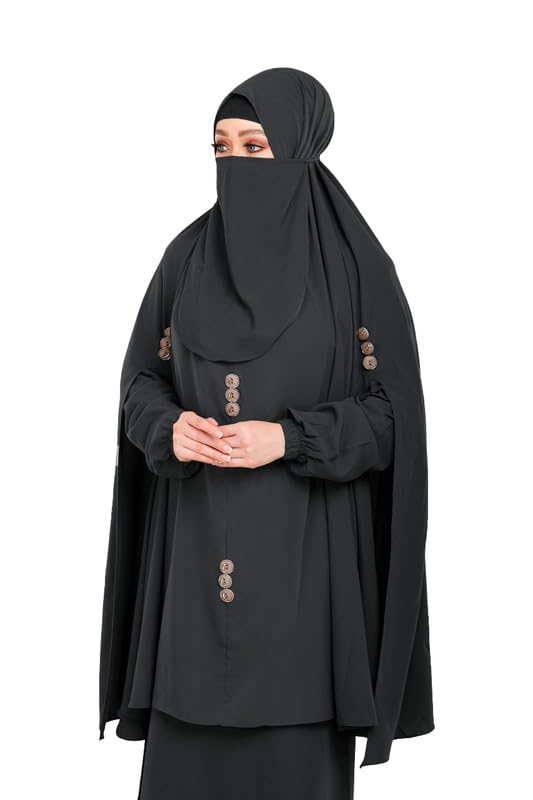 GAMAL SONS FOR ABAYA - عباية حريمي واسعة مع خمار متصل بتصميم محتشم وأنيق، مزينة بأزرار عصرية GAMAL SONS FOR ABAYA GS-7026-10918-Parent