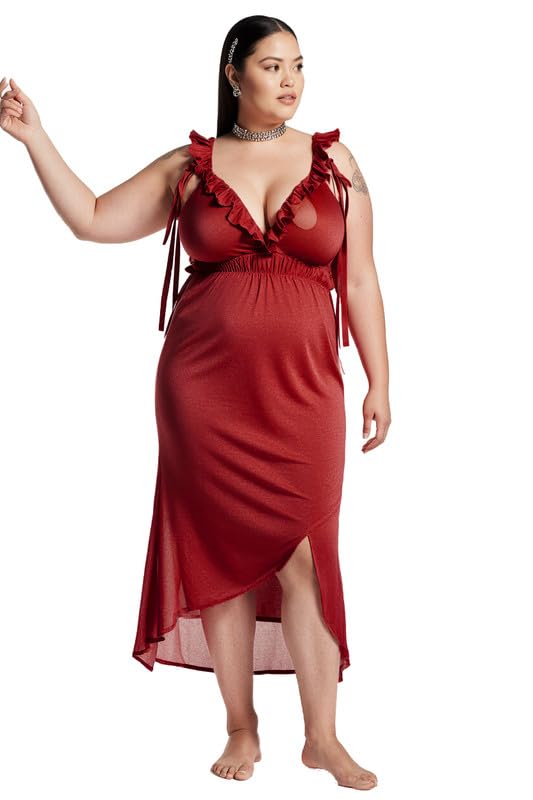 GAMAL SONS FOR ABAYA - Women Plus Size Elegant Sleeveless Ruffle Bust Sexy V Dress GAMAL SONS FOR ABAYA GS-00553-50956-Parent