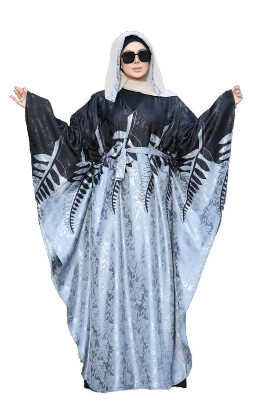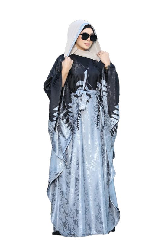 GAMAL SONS FOR ABAYA - Women's Luxury Satin Abaya Printed Elegant Pleated Loose Fit Abaya With Waist Tie GAMAL SONS FOR ABAYA GS-1623-33540-Parent