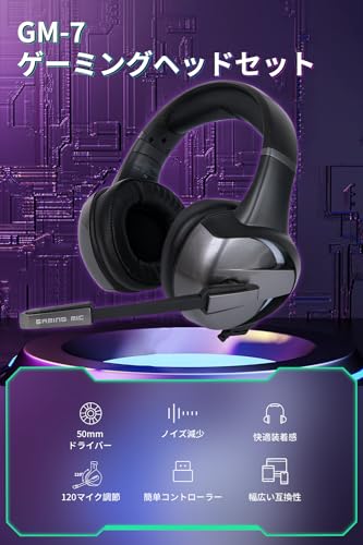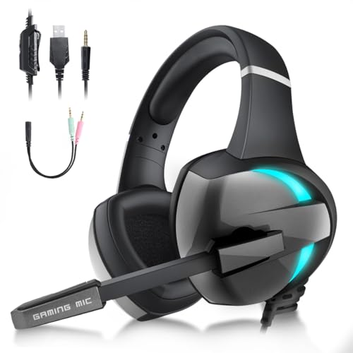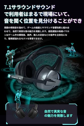 Generic - سماعة راس للالعاب مع صوت محيطي 7.1 وميكروفون عالي الدقة [وحدة غشاء مركب 50 ملم] سماعة راس سلكية للالعاب للكمبيوتر الشخصي خفيفة الوزن بخاصية كتم الصوت الجهوري العميق، فوق الأذن، أسود