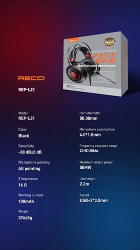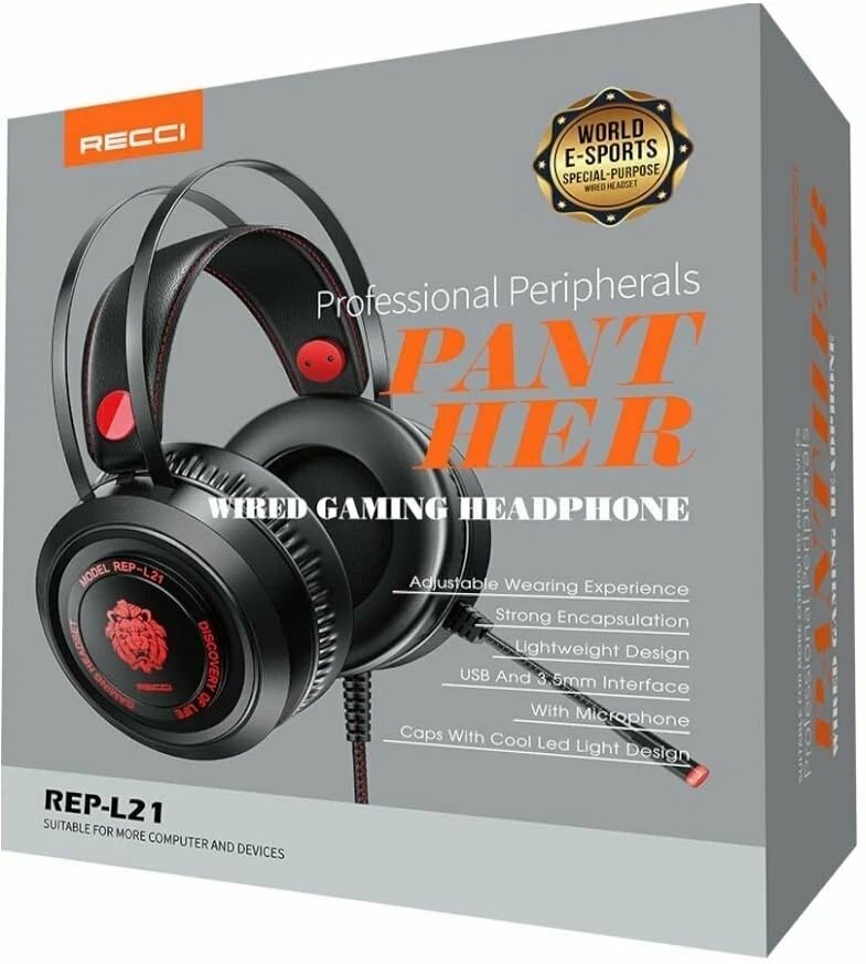 Generic - Gaming Headset - REP-L21 - Unique and Comfortable Design with RGB Lighting Works on All Computers and Gaming Platforms - Wired, Over-Ear, Black
