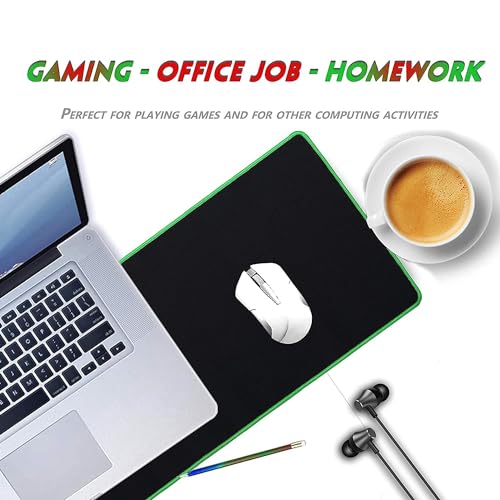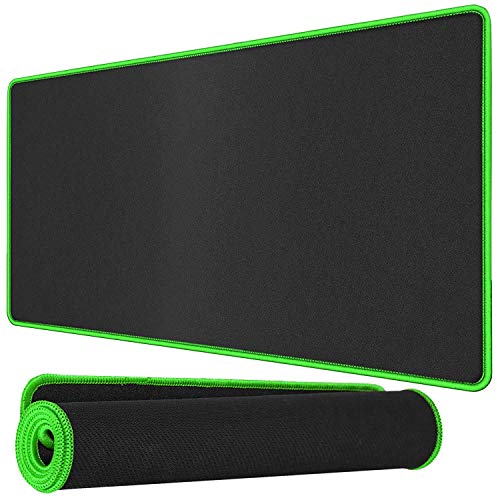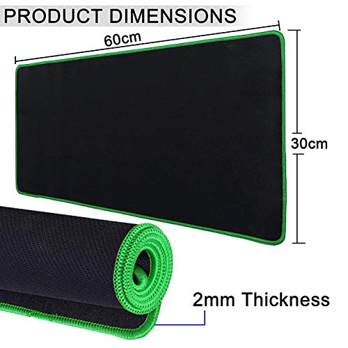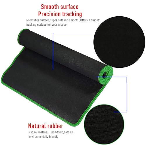 Generic - ماوس باد للألعاب - كبيرة الحجم - مطاطية مضادة للانزلاق ومقاومة للماء - مريحة للاستخدام - لون أسود بحواف ملونه (اسود بحواف اخضر)