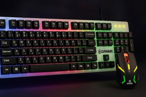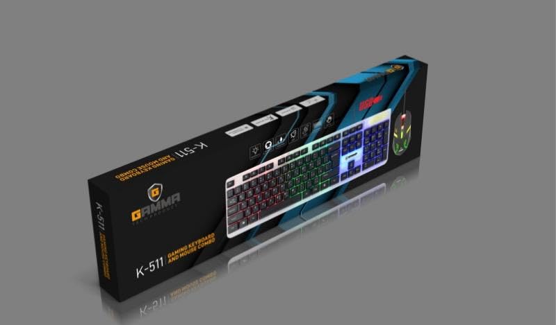 Gamma - Gamma K-511 English and Arabic Wired Rainbow Gaming Keyboard, Mouse Combo - Multicolor