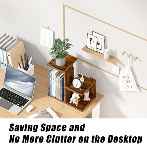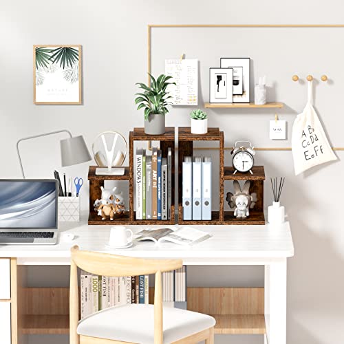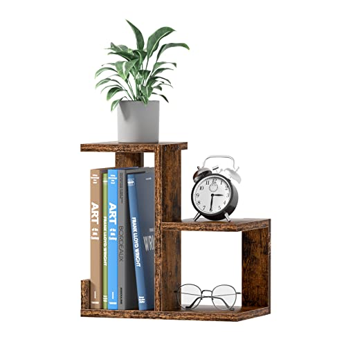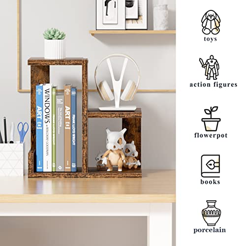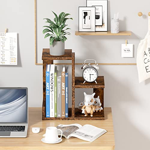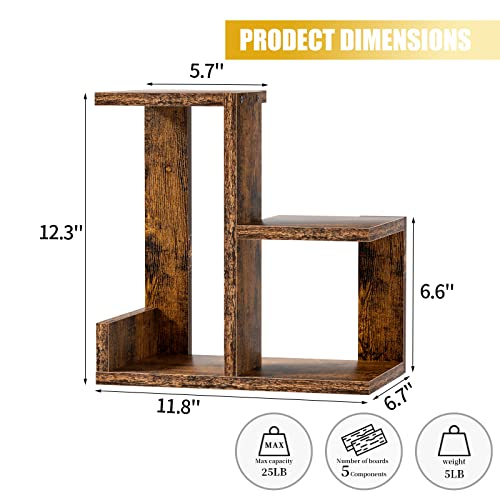 Gannyfer - Gannyfer Wood Desktop Shelf - Freestanding Small Bookshelf Desk Organizers, 3 Tier Storage Display Rack Home Decor, Stand Shelves Office Supplies for Books/Plants/Toys/Photo,Retro Brown