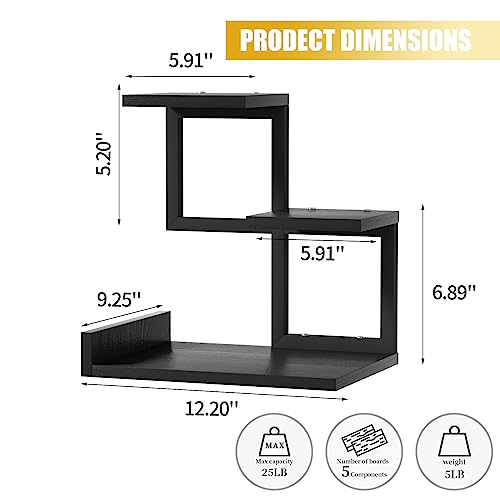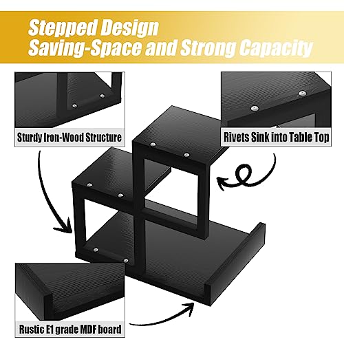 Gannyfer - رف خشبي لسطح المكتب من جانيفر - منظم لوازم مكتب صغير قائم بذاته عرض وتخزين 3 طبقات ارفف مع اطار معدني للكتب-النباتات-الالعاب اسود