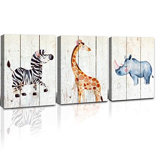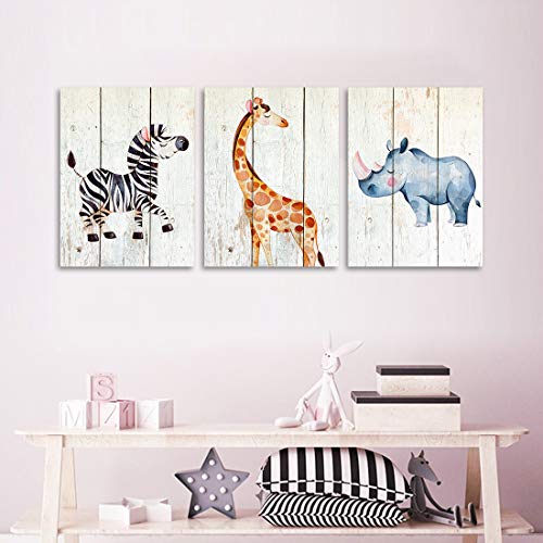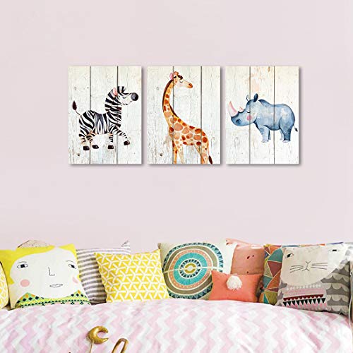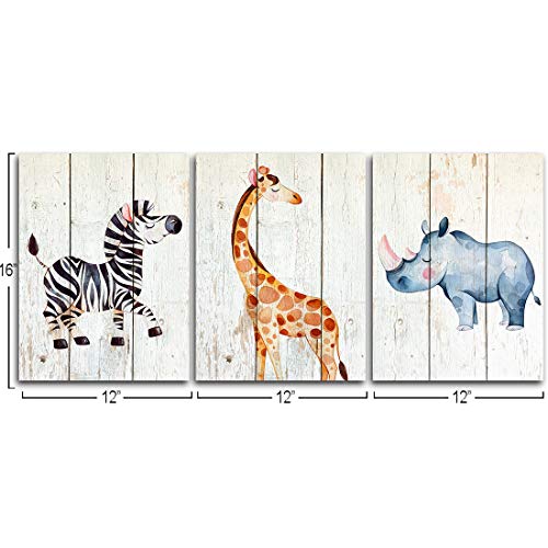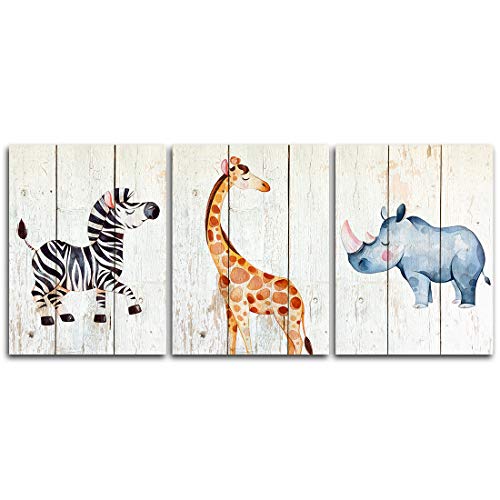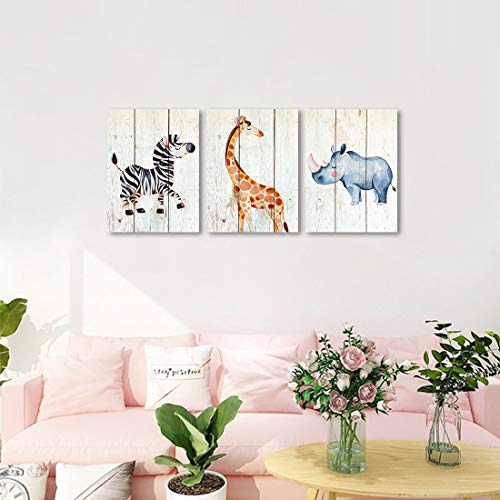 Gardenia Art - جاردينا ارت حمار وحشي لطيف على شكل حيوان وحيد القرن والزنجبيل والغزلان على صور خشبية لديكور الحائط لغرفة النوم والحضانة وحديقة الحيوان، 12 × 16 انش/ قطعة، مؤطر، 3 الواح، متعدد الألوان