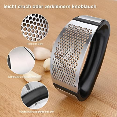 - مصنوعة من الستانلس ستيل 304 الآمن غذائيًا، هراسة الثوم هذه ليست فقط عالية الجودة ولكنها أيضًا مقاومة للعفن والانزلاق والتآكل. يضمن هيكلها المتين عدم الصدأ أو التشوه بمرور الوقت، مما يحافظ على وظيفته ومظهره. وهذا يجعلها أداة مطبخ موثوقة يمكنها تحمل الاستخدام المنتظم مع ضمان بقاء إعداد طعامك آمنًا وصحيًا.