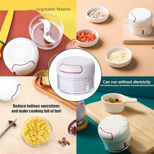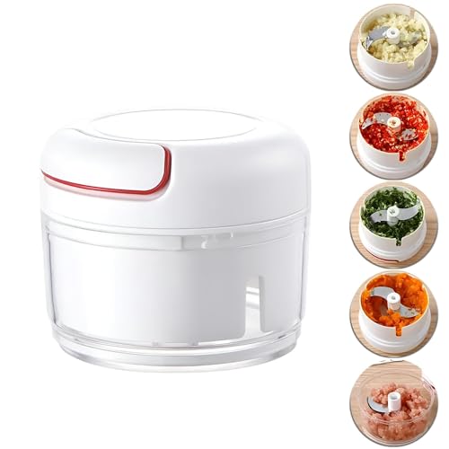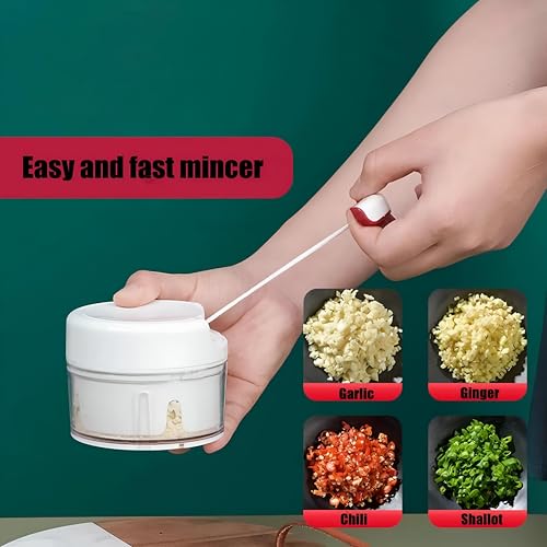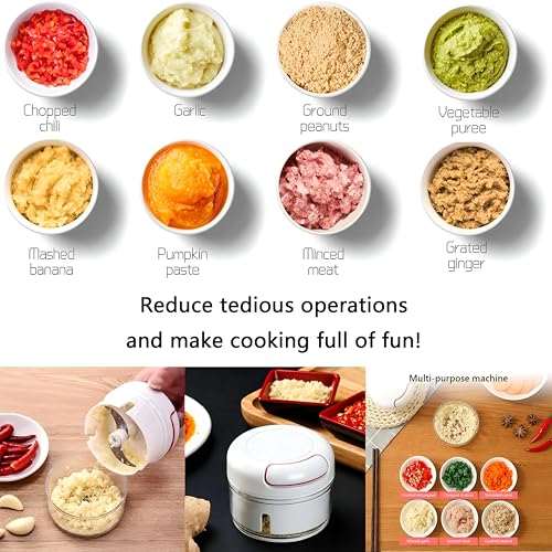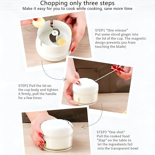 - The easy-to-use design is the corner stone of this product. Featuring strong stainless steel blades, it cuts all food types quickly and efficiently, saving you time and effort in the kitchen. Just pull the handle several times, and watch the ingredients are cut perfectly to your preferences, making cooking easy with no hassle.