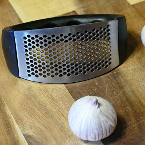 Generic - هراسة الثوم والزنجبيل متأرجحة تعمل بالضغط، مصنوعة من الفولاذ المقاوم للصدأ تتميز بتصميم مريح، توفر الجُهد مع مقبض بلاستيكي، سهلة الغسل (متعدد الالوان)