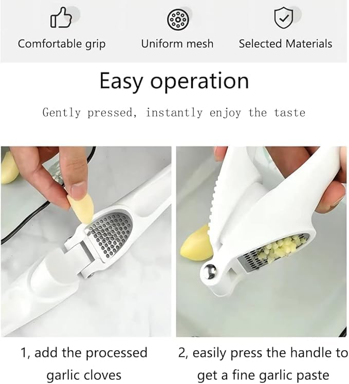 - Effortless Garlic Every Time – Tired of plastic garlic tools cracking mid-use? This stainless steel press gives you smooth crushing in seconds—no more sore hands or wasted cloves.