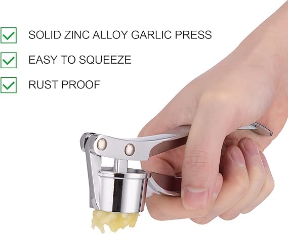 Generic - Garlic Press with Soft Handle, Easy to Press and Comfortable - Powerful Garlic Mincer to Extract More Garlic Paste - Easy to Clean Garlic Press (Silver)