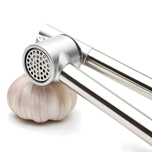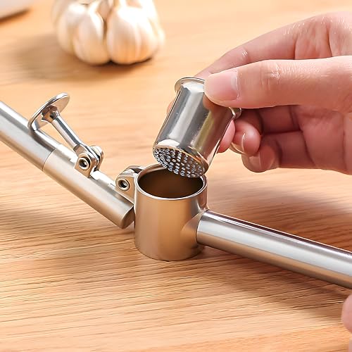 - HIGH EFFICIENT - The garlic masher is a very practical and practical tool that makes it easy to prepare many tasty dishes. With a 1.25" diameter and high pressure, the piston is able to squeeze garlic clove entirely without wasting a gram of garlic paste. This gives our dishes an intense taste and intense scent that contribute to a unique culinary experience.