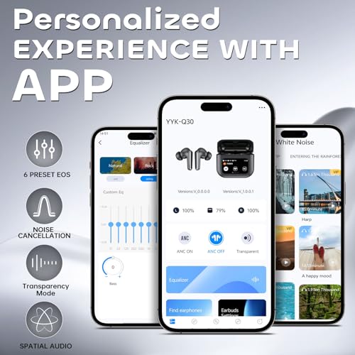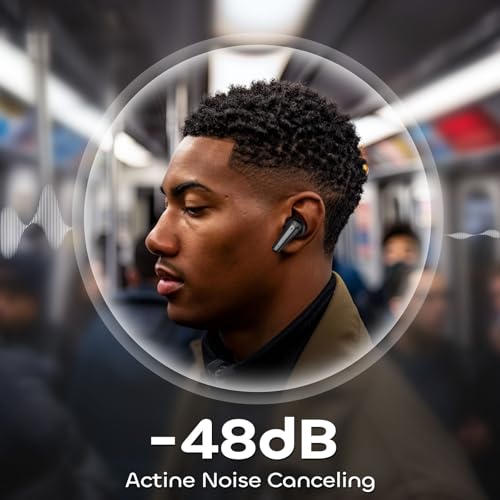 Garlo - سماعات أذن لاسلكية ترو بلوتوث 5.4، سماعات لاسلكية بخاصية إلغاء الضوضاء النشطة مع علبة شحن ذكية بوقت تشغيل 48 ساعة داخل الأذن، بصوت باس عميق مع 6 ميكروفونات، قابلة للتخصيص عبر التطبيق من جارلو