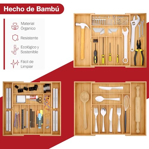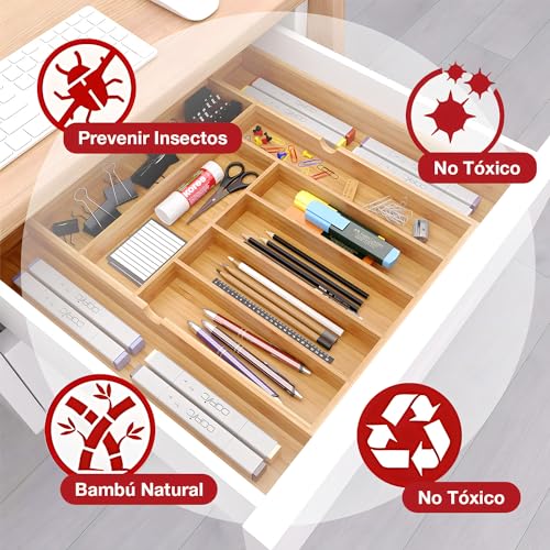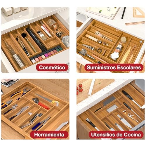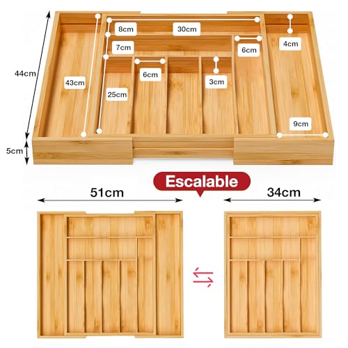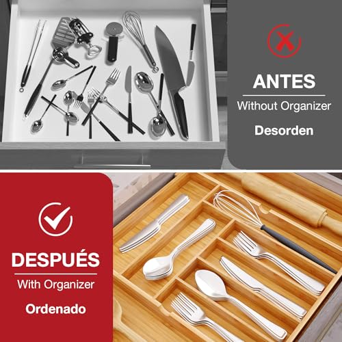 - 【Natural Bamboo Material】We build our kitchen bamboo cutlery drawer organizer with 100% moso bamboo which is earth friendly, stylish and durable to last for years. Finely polished on all surfaces and gentle on cutlery and utensils. Bamboo wood is organic and eco-friendly, and is very durable and gives a modern and elegant touch to your spaces.