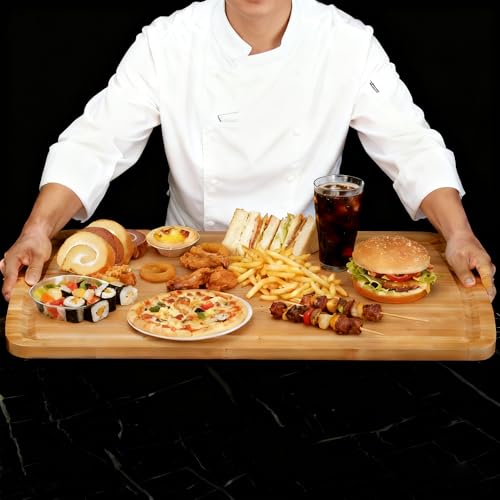 - مساعد مطبخ متعدد الاستخدامات - لا يقتصر على إعداد الطعام فقط، يمكن استخدام لوح التقطيع الكبير جدًا هذا أيضًا كلوح تشاركوتيري للحفلات، مساحة إضافية على سطح الطاولة عند الحاجة مثل الغطاء العلوي للموقد أو فوق لوح الحوض أو سطح جزيرة المطبخ.