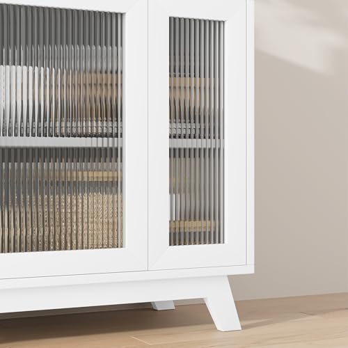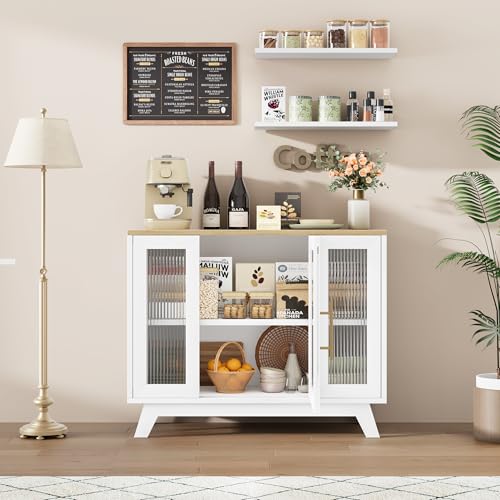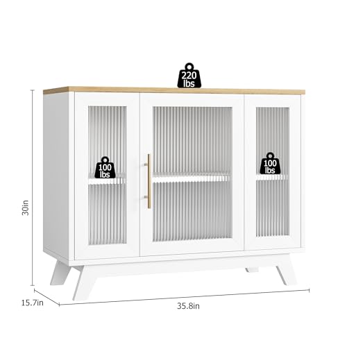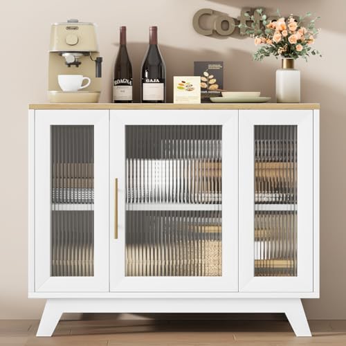 GarveeHome - خزانة بوفيه من جارفي هوم مقاس 36 انش مع ابواب زجاجية مخددة ومقابض ذهبية، خزانة جانبية عصرية مع ارفف قابلة للتعديل، للمطبخ وغرفة الطعام وغرفة المعيشة والمدخل