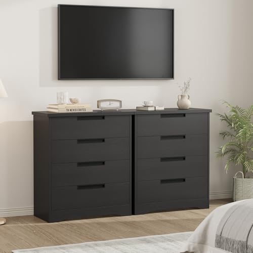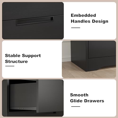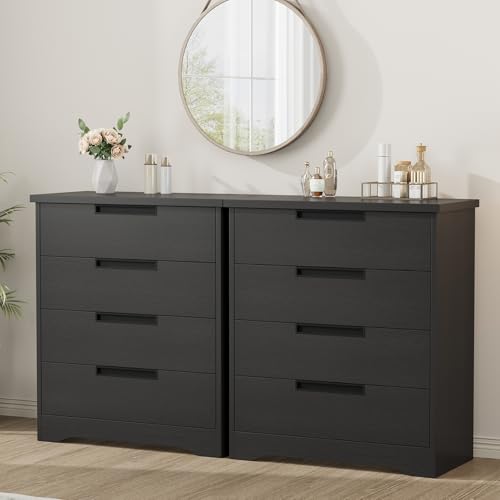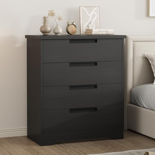 GarveeHome - خزانة ذات 4 ادراج لغرفة النوم من جارفي هوم، خزانة ادراج سوداء مع تصميم مقابض مدمجة، منظم خزانة خشبي لغرفة المعيشة والحضانة والرواق والمدخل