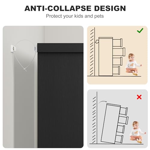 - هيكل متين - هذه الخزانة ذات الأدراج الأربعة مصنوعة من ألواح خشبية معززة وقاعدة صلبة تضمن المتانة والثبات، ويسمح الهيكل القوي لها باستيعاب مجموعة متنوعة من العناصر دون التعرض لخطر التلف أو التلف، مما يجعلها قادرة على التعامل مع المتطلبات اليومية. يعمل الجهاز المضاد للانقلاب المتضمن على تحسين الثبات والسلامة، مما يوفر حماية إضافية لأفراد عائلتك