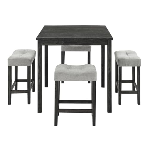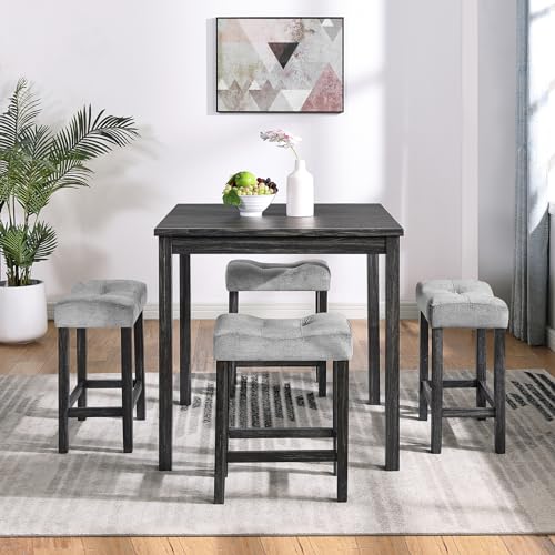 GarveeHome - GarveeHome 5pc Wood Bar Table and 4 Chairs Set, Black+ Gray Pub Kitchen Dining Table Set Counter Height Compact High Top with Bar Stools Table for Breakfast Nook Living Room Space Saving Restaurant
