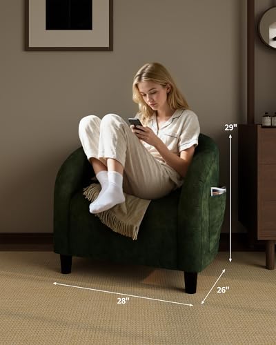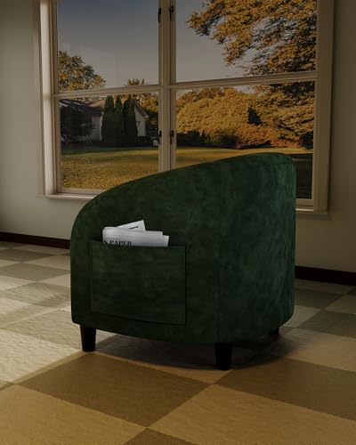 GarveeHome - GarveeHome Accent Chair Velvet Club Chair Comfy Armrest Upholstered Barrel Chair with Soft Padded Seat for Living Room Bedroom Study Waiting Room(Retro Green)