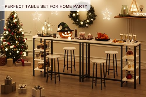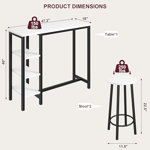 GarveeHome - طاولة بار من جارفي هوم مع مقعدين، طاولة مرتفعة مع 3 ارفف تخزين، طقم طاولة طعام من 3 قطع للمساحات الصغيرة والشقة والمطبخ، ابيض واسود