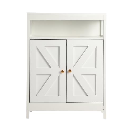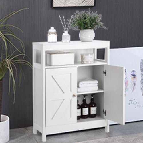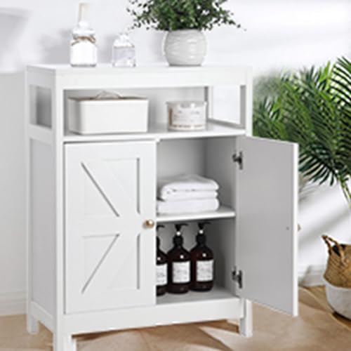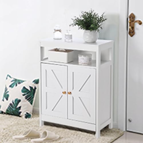 GarveeHome - وحدة تخزين أرضية للحمام بتصميم حديث مع رف قابل للتعديل وباب مزدوج مقاومة للصدأ لمنطقة المدخل، دولاب منظم، أثاث تخزين للمنزل وغرفة المعيشة من جارفي هوم، أبيض