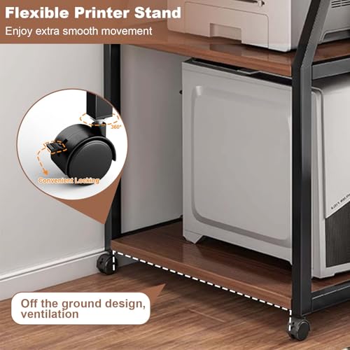 GarveeHome - GarveeHome Printer Stand with Storage Shelf, 3 Tier Printer Cart with Wheels, Multifunctional Mobile Storage Table, Computer Tower Stand for Home Office