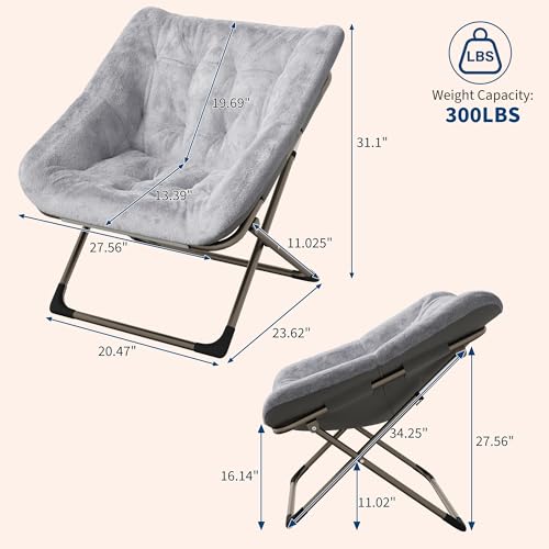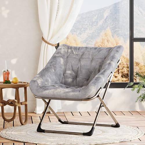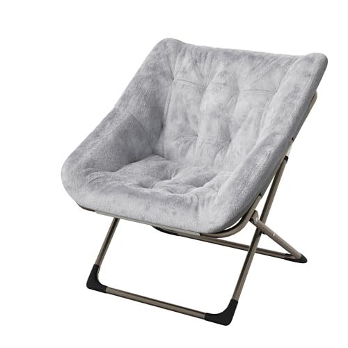 GarveeHome - GarveeHome Rabbit Fur Saucer Chair - Foldable Comfy Lounge Chair with Metal Frame for Kids, Teens & Adults - Cozy Indoor Lazy Sofa for Bedroom, Dorm & Living Room, Grey