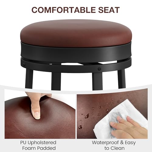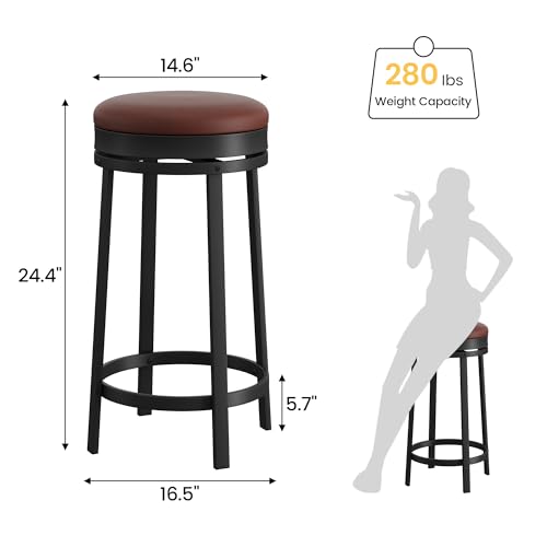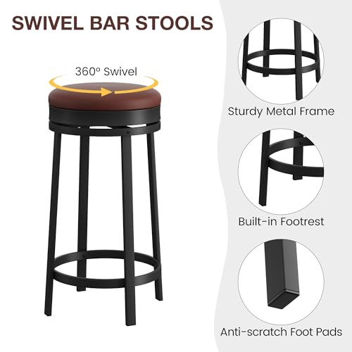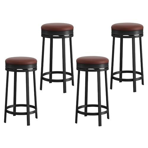 GarveeHome - GarveeHome Swivel Bar Stools Set of 4, 24.4" Counter Height Bar Stools with Upholstered PU Leather Cushion, Backless Round Kitchen Barstools with Metal Frame for Kitchen Home Bar, Brown