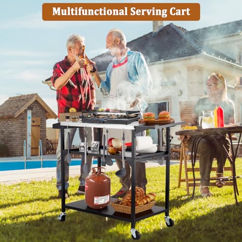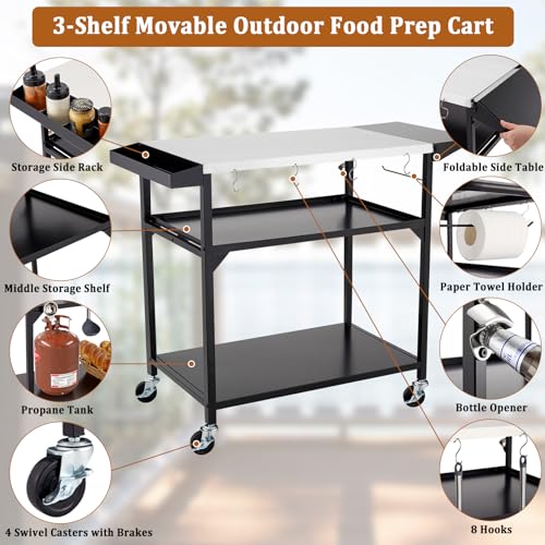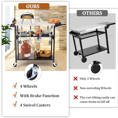 - 🛒Versatile for Multiple Occasions: This 3-shelf grill cart with storage can be used as extensions of indoor kitchens or workbenches, as well as outdoor BBQ prep tables, pizza oven tables, BBQ carts, pizza oven carts, and more, catering to a variety of uses.
