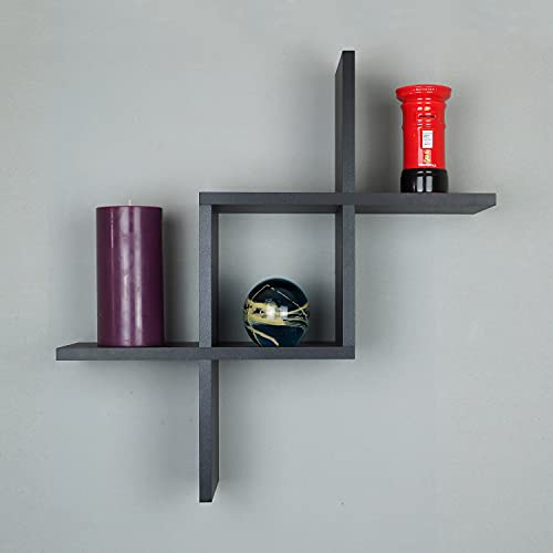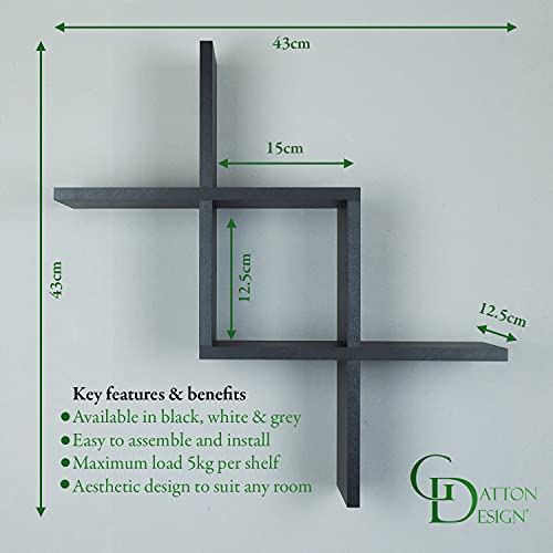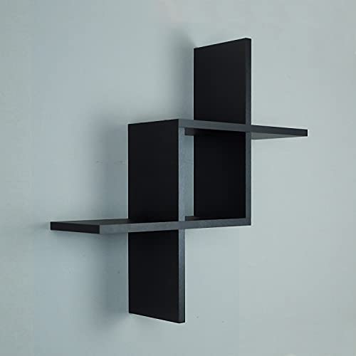 Gatton Design - أرفف عائمة بتصميم مكعبات متشابكة بحامل يثبت على الحائط، لديكور غرفة النوم وغرفة المعيشة والحمام والمطبخ من جاتون ديزاين، أسود