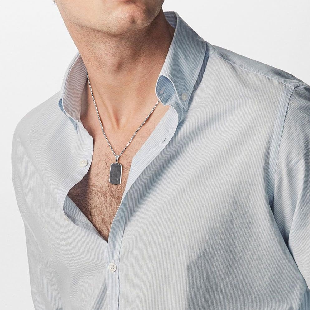GAVU - سلسلة فضية بدلاية من الفولاذ المقاوم للصدأ للرجال من جي ايه في يو، لون أسود، مقاس 50 سم
