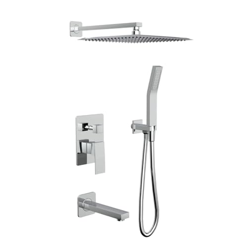 - مجموعة كونسيلر ايزي بوكس EBOX00223C مربعة بثلاث منافذ من الكروم، صمام ثرموستاتي كامل للاستحمام المخفي متعدد المنافذ مع تحكم آمن في درجة الحرارة من جواد