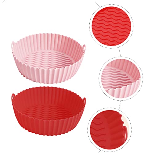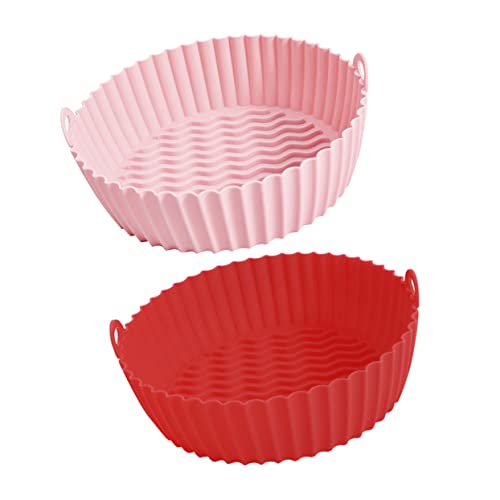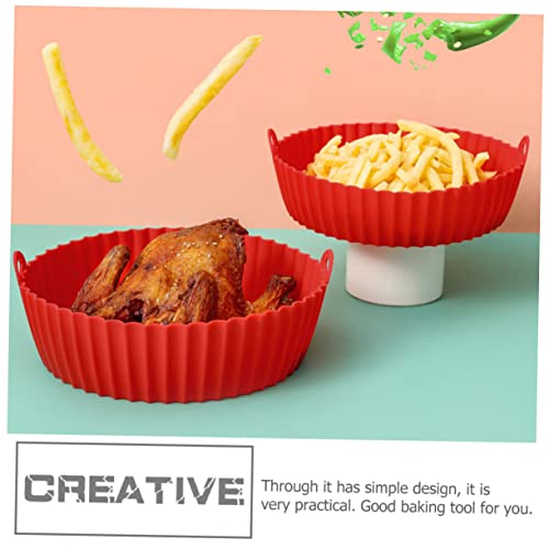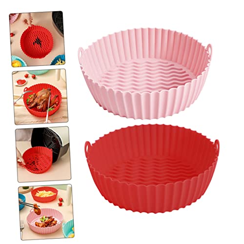 GAXIRE - 2Pcs Fat Free Frying Pan Air Oven Round Baking Pan Silicone Inserts Greas-free Fryer Baking Sheet Rubber Grease-free Fryer