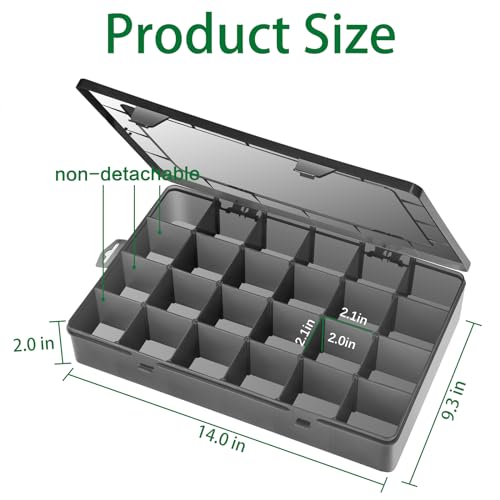 Gbivbe - صندوق تخزين بلاستيكي كبير للغاية مكون من 24 شبكة من جي بي اي فايب، صندوق تخزين خرز بلاستيكي أسود مع فواصل قابلة للتعديل للأقراط والمجوهرات والعناصر الصغيرة، قطعتين، من جبيفبي، البولي بروبلين
