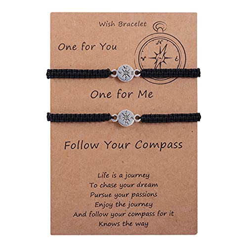 GBTBYS - 2PCS Follow Your Compass Bracelets Pinky Promise Adjustable Rope for Women Best Friend Mother Daughter Gift