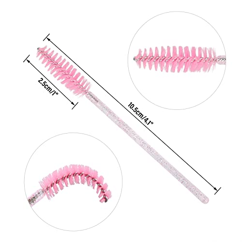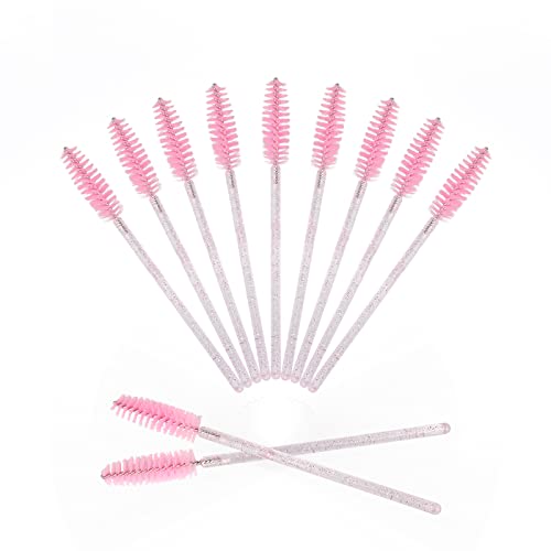 GCQQ Beauty - 50PCS Crystal Mascara Wands Disposable Eyelash Eyebrow Spoolie Brush for Makeup Eyelash Extensions (Pink)