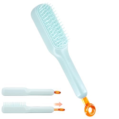 GDOKKNY - فرشاة شعر ذاتية التنظيف بسحبة واحدة، مشط تدليك مضاد للكهرباء الساكنة ناعم للنساء، فرش شعر للشعر الطويل والقصير والمموج والمفرود من جب دوكني، متعددة الألوان، 1 قطعة، أزرق