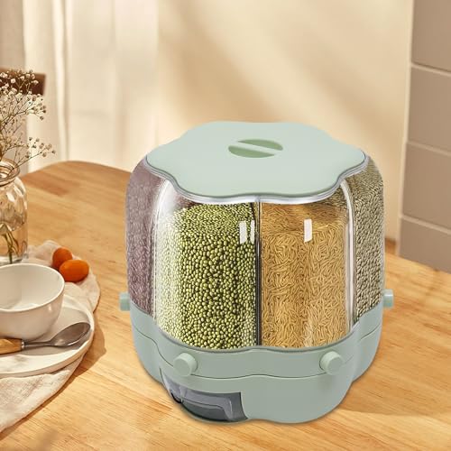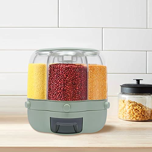 GDSKR - 6-Compartment Rotating Grain Dispenser, 360° Rotatable Cereal Dispenser, Cereal Container, Storage Container, Rice Dispenser for Small Beans, Dispenser, Cereal Dispenser, Sealed Storage