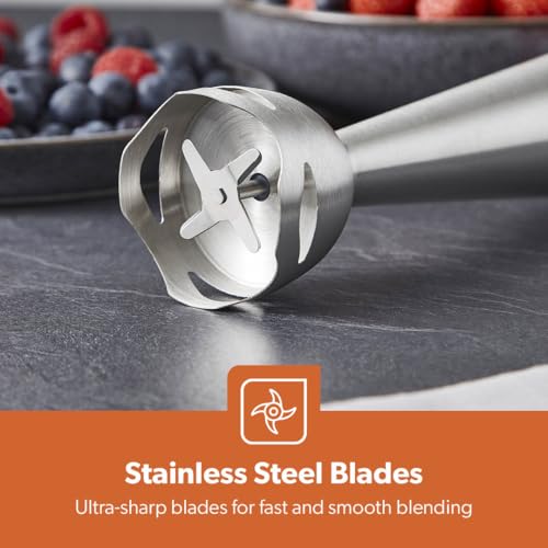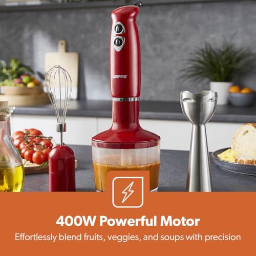 - 1. CREATE IDEAL CONSISTENCY -This hand blender comes with perfect 400W power which fits you’re grinding requirements. Great for blending dairy products, fruits, vegetables, sauces, fruit juices, soups, shakes, baby food, and more.