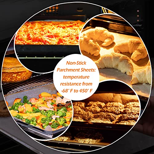 - 4, Non-Stick Parchment Sheets: the paper’s temperature resistance is from -68° F to 450° F, which surely is a perfect necessity in the kitchen whether in freezer, microwave or air fryer, and your food could easily slide off the baking tray and the bread won’t stick on it.