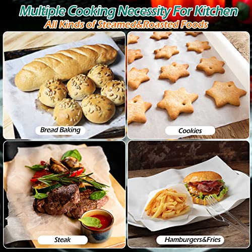 - 3, Double Side Use Available: You can use both sides to bake your cookies, bread, meat and pizza and so on. The non-toxic kitchen baking paper is in food grade quality that you can use with no worries.