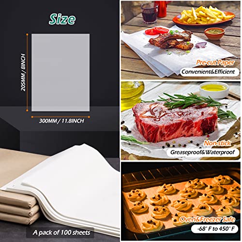 GeeRic - GeeRic Parchment Paper, 100 Pcs 8x12 inch Precut Baking Sheets, Non-Stick for Cookies, Bread, Meat, Pizza (White)
