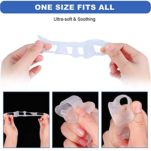 - ONE SIZE FITS SPREADER: This gel toe separation is easy to slip on your toes and gently separate toes and stretches plantar fascia, one size can fit most medium and large feet. This toe spreader silicone is comfortable to wear for all types of shoes and designed to fit all feet for easy walking.