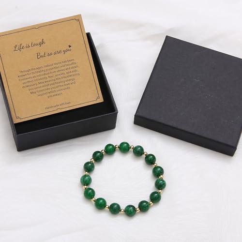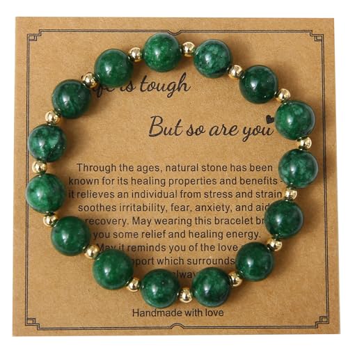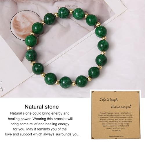 GelConnie - GelConnie Beaded Bracelets for Women Inspirational Bracelets Healing Stone Bracelets 10mm Green Beaded Bracelet Stress Relief Bracelets Wrap Get Well Soon Bracelet