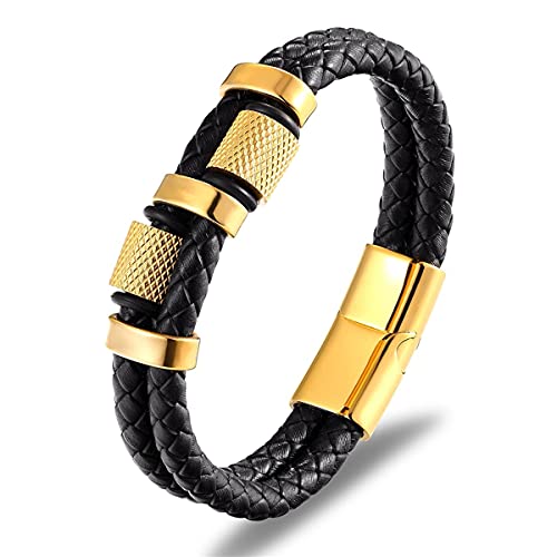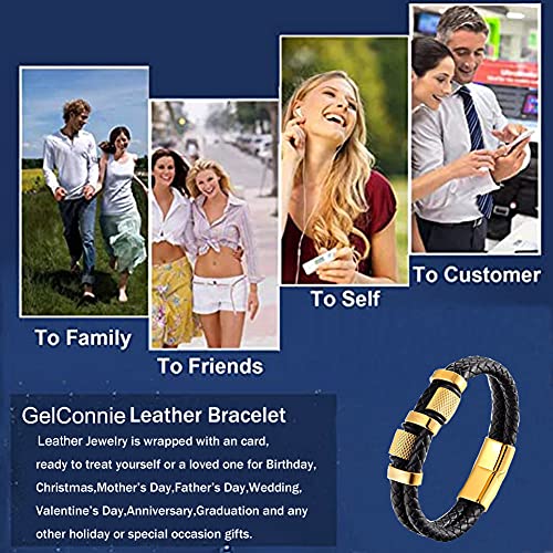 GelConnie - GelConnie Braided Leather Bracelet Double-Row Rope Leather Wristband Cuff Bracelet for Men Women Wrap Bangle Gold Stainless Steel, Leather, not known