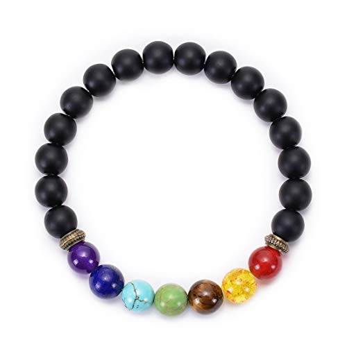 GelConnie - GelConnie Lava Rock 7 Chakra Natural Stone Stress Relief Healing Aromatherapy Essential Oil Diffuser Bracelet (8mm)
