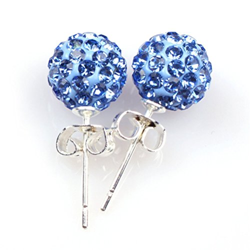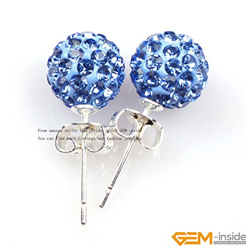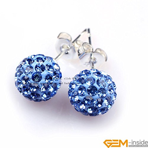 GEM-INSIDE CREATE YOUR OWN FASHION - GEM-INSIDE CREATE YOUR OWN FASHION 8mm Light Sapphire Blue Color CZ Crystal Pave Sparkle Studs Earrings