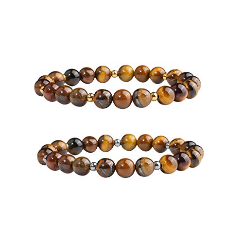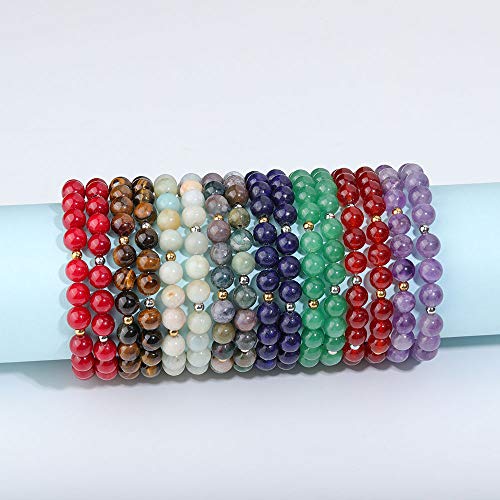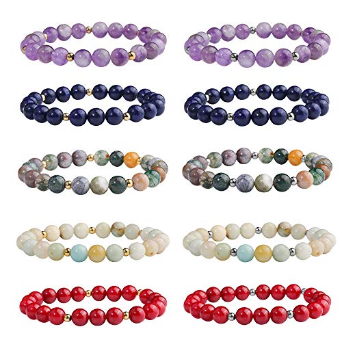 generic - Gemstone Healing Crystal Stretch Bracelet for Anxiety Stress Relief Natural Stone Stainless Steel Bead Semi Precious Elastic Bracelet Set of 2, stone, not known,