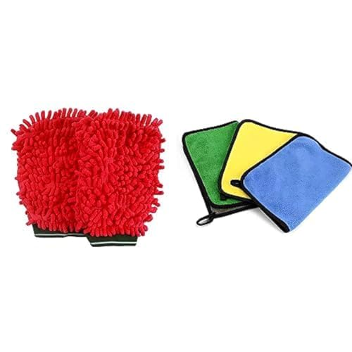 Genaric - Car Wash or Kitchen Cleaning Gloves Double Sided Scratch Free Washing Glove Car Washing Gloves With Super Meitt Microfiber + 4Pcs Micro Fiber Towel 30cmx40cm